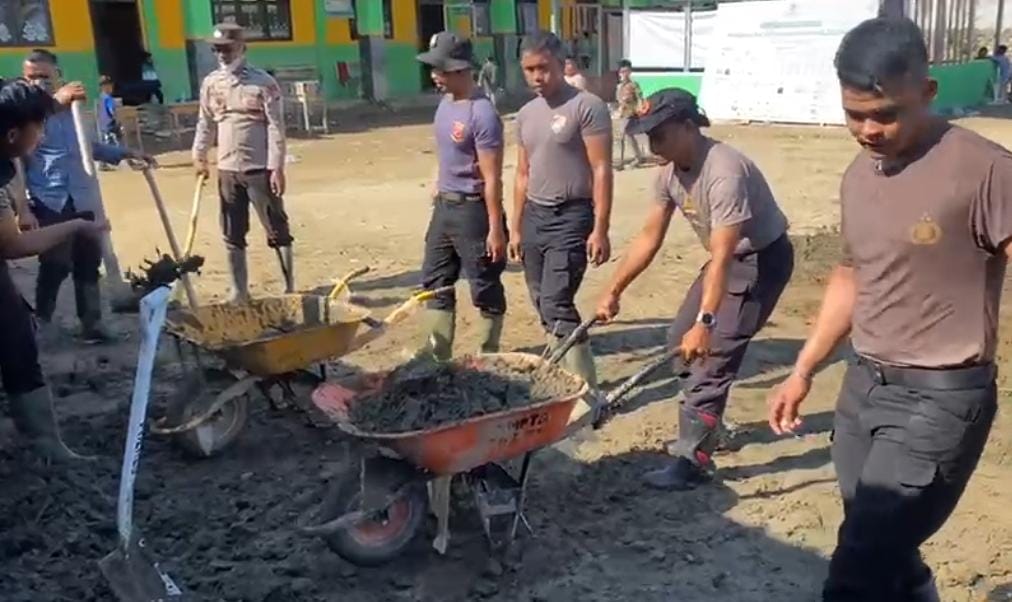 Bireuen — Kepolisian Resor Bireuen bersama jajaran Polsek melaksanakan gotong royong pemulihan pascabencana banjir bandang di SD Negeri 11 Kutablang,…
