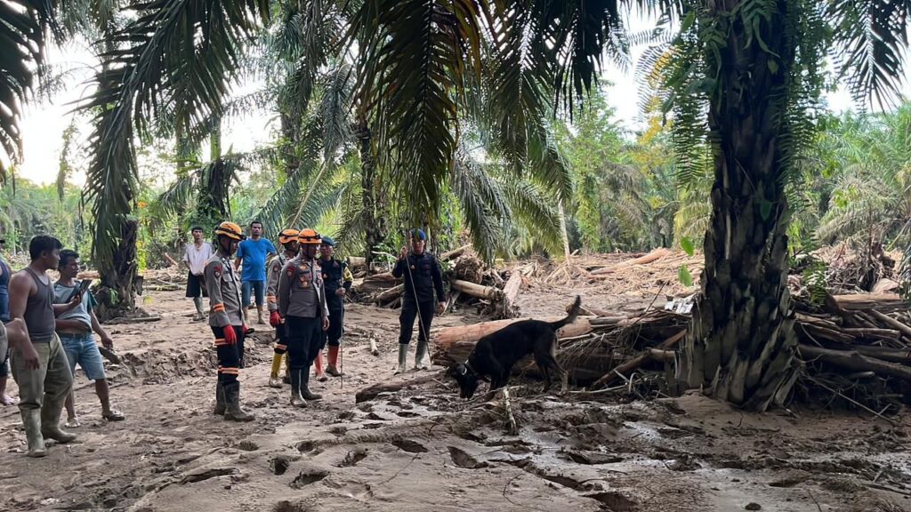 Batang Toru, Sumut — Satuan K9 Unit SAR Ditpolsatwa Korps Sabhara Baharkam Polri kembali dikerahkan untuk membantu proses pencarian korban bencana alam di wilayah Polda Sumatera Utara. Pada Selasa, 2 Desember 2025, tim tiba dan langsung melakukan penyisiran di bantaran Sungai Desa Huta Raja, Kabupaten Batang Toru.